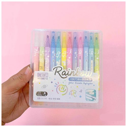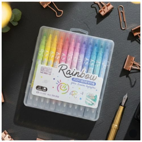 ¡Dale un toque de destello a tus apuntes con el poder del glitter! Este Set X12 Resaltador Glitter Rainbow no solo colorea, sino que deposita una capa de brillo deslumbrante sobre el papel, transformando cualquier tarea en una obra de arte brillante. Es la elección favorita para quienes buscan un regalo de cumpleaños o "souvenir" que destaque por su originalidad y su acabado centelleante que fascina a los más chicos.